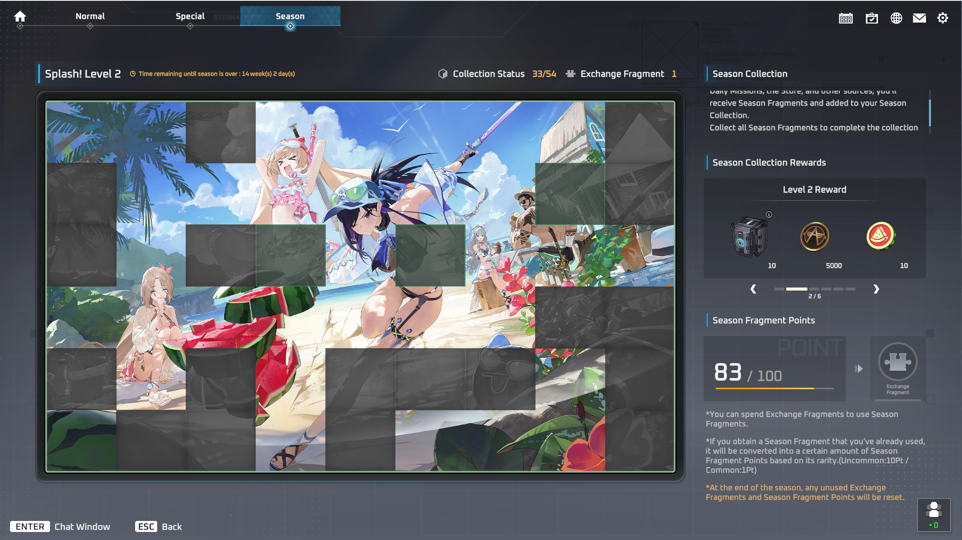 - 獲得したシーズンピースはシーズンコレクションに自動で登録されます。
