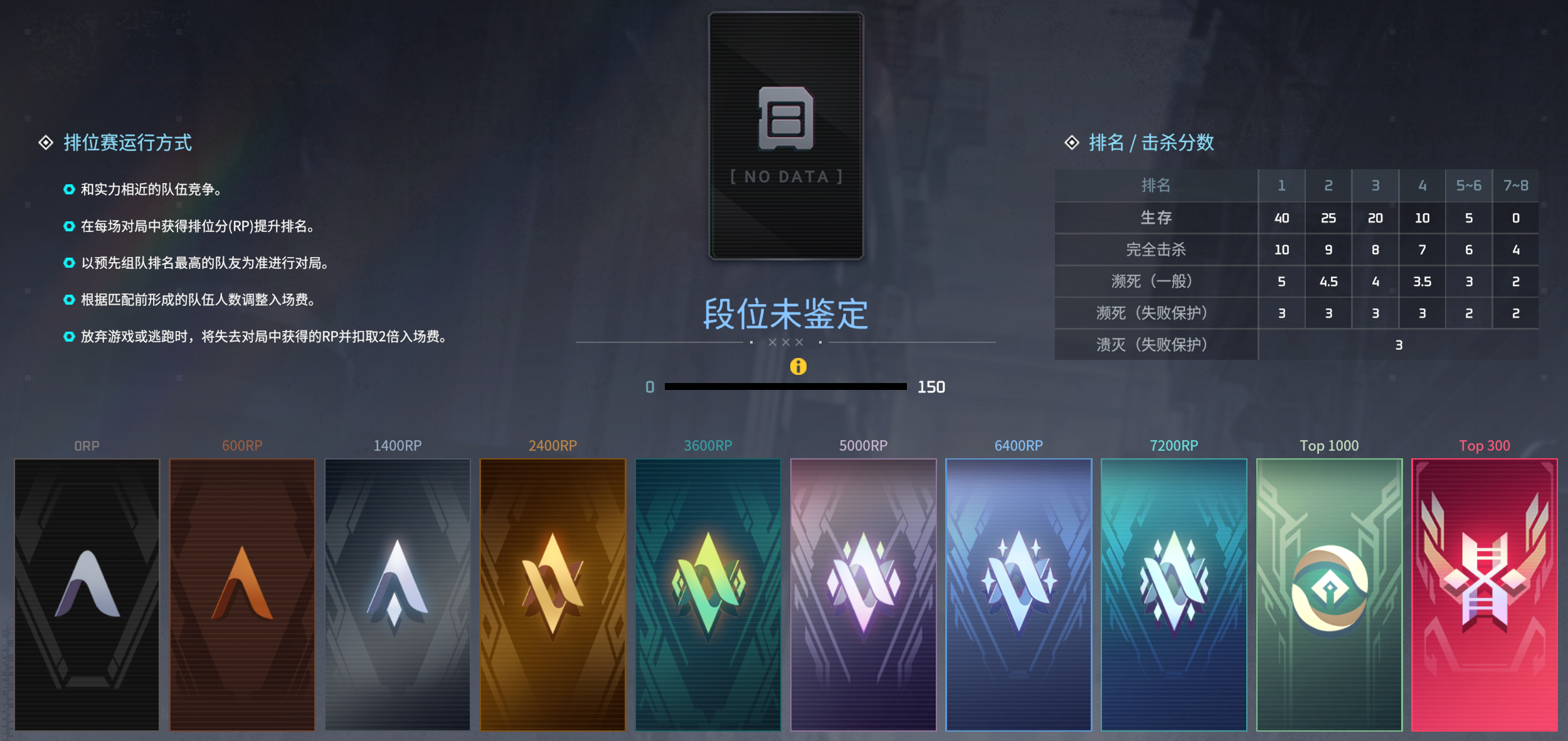 | 段位 | RP范围(可能会变动) | 入场费(1人/3人预组) | 入场费(2人预组) | |