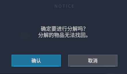不小心分解了物品,可以恢复吗? 이터널 리턴1 2025年09月01日 06:05 更新 一旦物品分解完成,已经分解的道具将无法恢复或撤销。在游戏内进行分解操作时,系统将会显示如下提示。请在确认分解前务必谨慎操作。 相关文章 游戏过程中出现卡顿、掉线或延迟现象,该怎么办? 为什么在游戏中看不到野生动物&物件时间提示? 为什么在临时安全区获胜了,但队友却没有复活? 什么是超时空传送仪? Unity崩溃错误(错误显示玄佑头像)