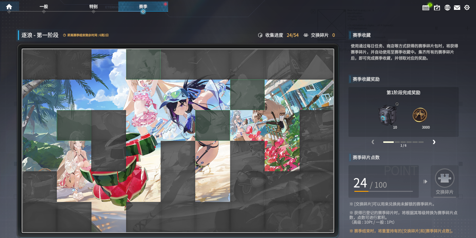 赛季收藏共分6个阶段,必须完成前一阶段的奖励领取后,才能进入下一阶段。